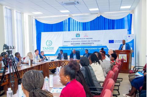 The event brought together TANZIE partners from across the globe, including the European Foundation for Management Development (EFMD), the University of Alicante (UA), and the University of Saarland (USAAR) from Europe, alongside five Tanzanian institutions: the Tanzania Commission for Universities (TCU), Mzumbe University (MU), the Nelson Mandela African Institution of Science and Technology (NM-AIST), the Muslim University of Morogoro (MUM), and the Catholic University of Health and Allied Sciences (CUHAS).